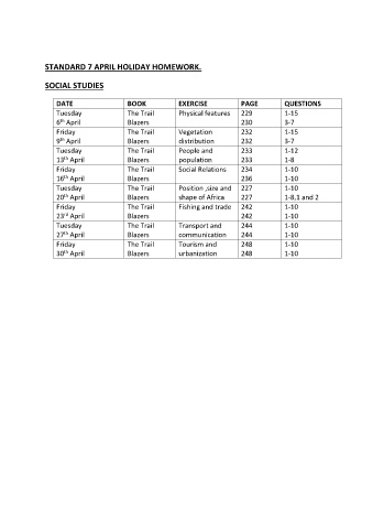 STANDARD 7 APRIL HOLIDAY HOMEWORK.