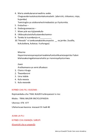 10. “Hewala” ni tamkoamabalohuonyesha __ na jambo. (kusifia,